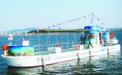 8月12日,由獐子岛集团下属的大连长山群岛客运有限公司投资400万元新建的两艘旅游观光式半潜艇正式下海试运营,填补了长海县休闲旅游产业缺少水下观光的空白。新建的半潜艇总长17.85米,型宽3.8米,型深2.08米,定员45人,设计航速9节,吃水1.4米。半潜艇可实现海上观光与海底探秘双重功能,水线设置于舷侧玻璃窗之上、甲板之下,乘客既可以体验潜水员入海采捕的全过程,又可以享受悠闲海洋牧场甩线垂钓的惬意。